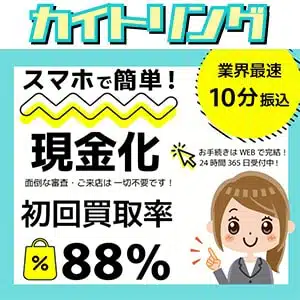 営業時間内であれば、換金率90%で即日現金化できるため、今すぐお金が必要な場合は最短30分で振込対応まで行ってくれます。